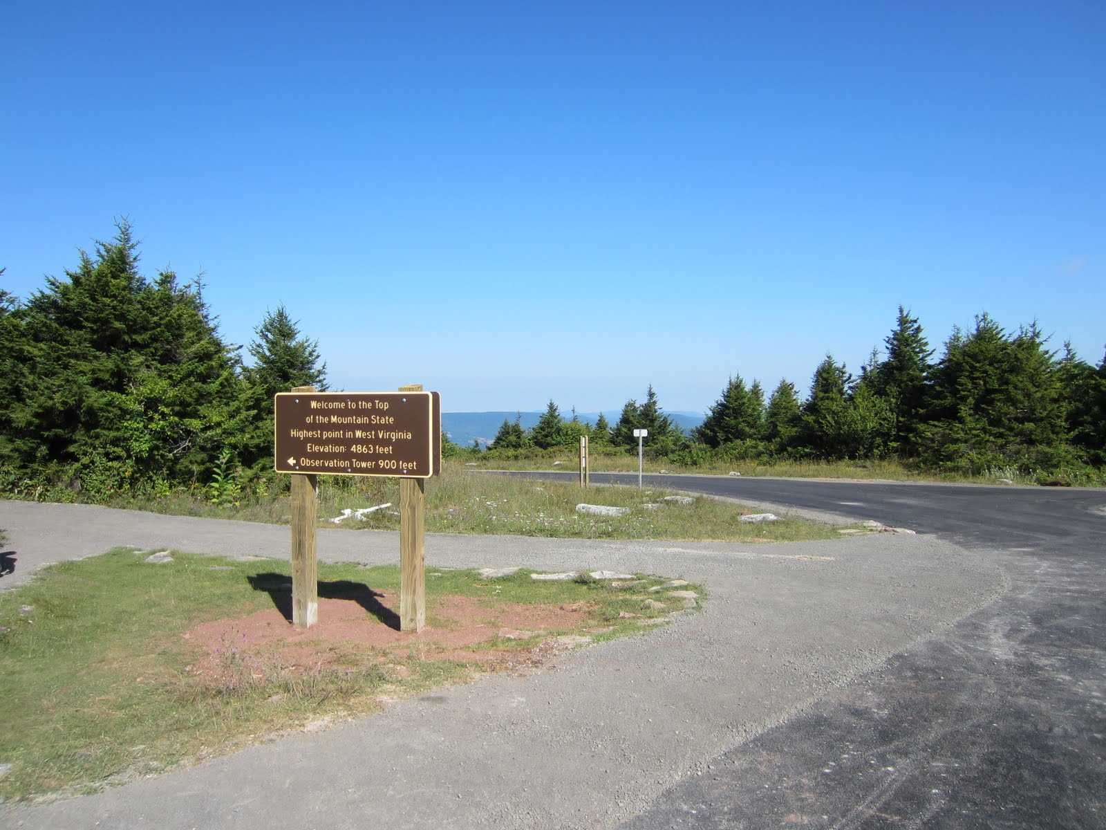 В какой-то момент вообще начинаешь ехать, не по асфальту, а по плотно утрамбованной грунтовке. Дорога чисто туристическая: к тропам, лагерю и вершине Spruce Knob – жилых домов там уже нет.