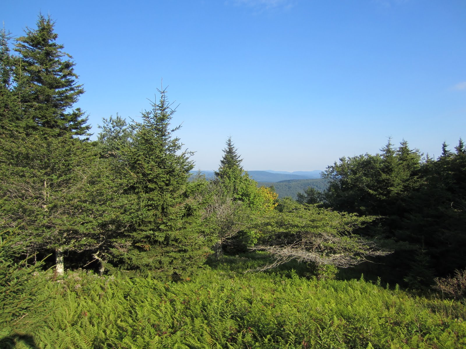 Наша последняя цель в лесу была вершина Spruce Knob – самая высокая точка Западной Вирджинии. Несмотря на громкий титул, это всего лишь лесистый холм, один из множества в тех местах. На вершину ведет и автомобильная дорога, но нам, разумеется, было интереснее забраться туда по тропе Huckleberry trail (Черничная тропа). Она ведет прямо от водопадов до вершины.