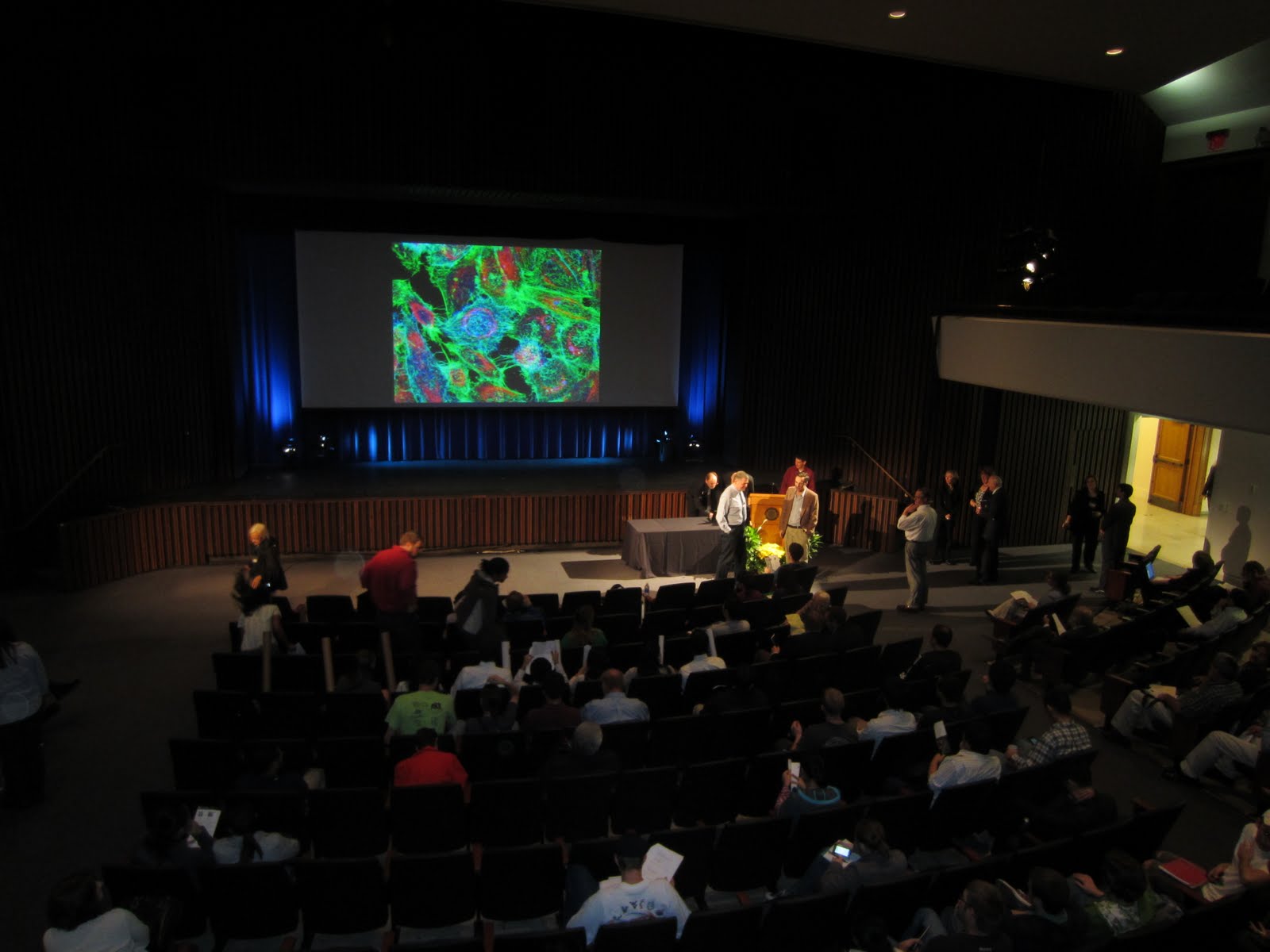 Впрочем, о Нобеле в пятницу вслух не вспоминали. Мне лекция и без этого понравилась. Я боялся, что опять пойдут сплошные молекулярно-биологические аббревиатуры и термины, но докладчик обошелся без них, разве что многовато было слайдов с текстом.