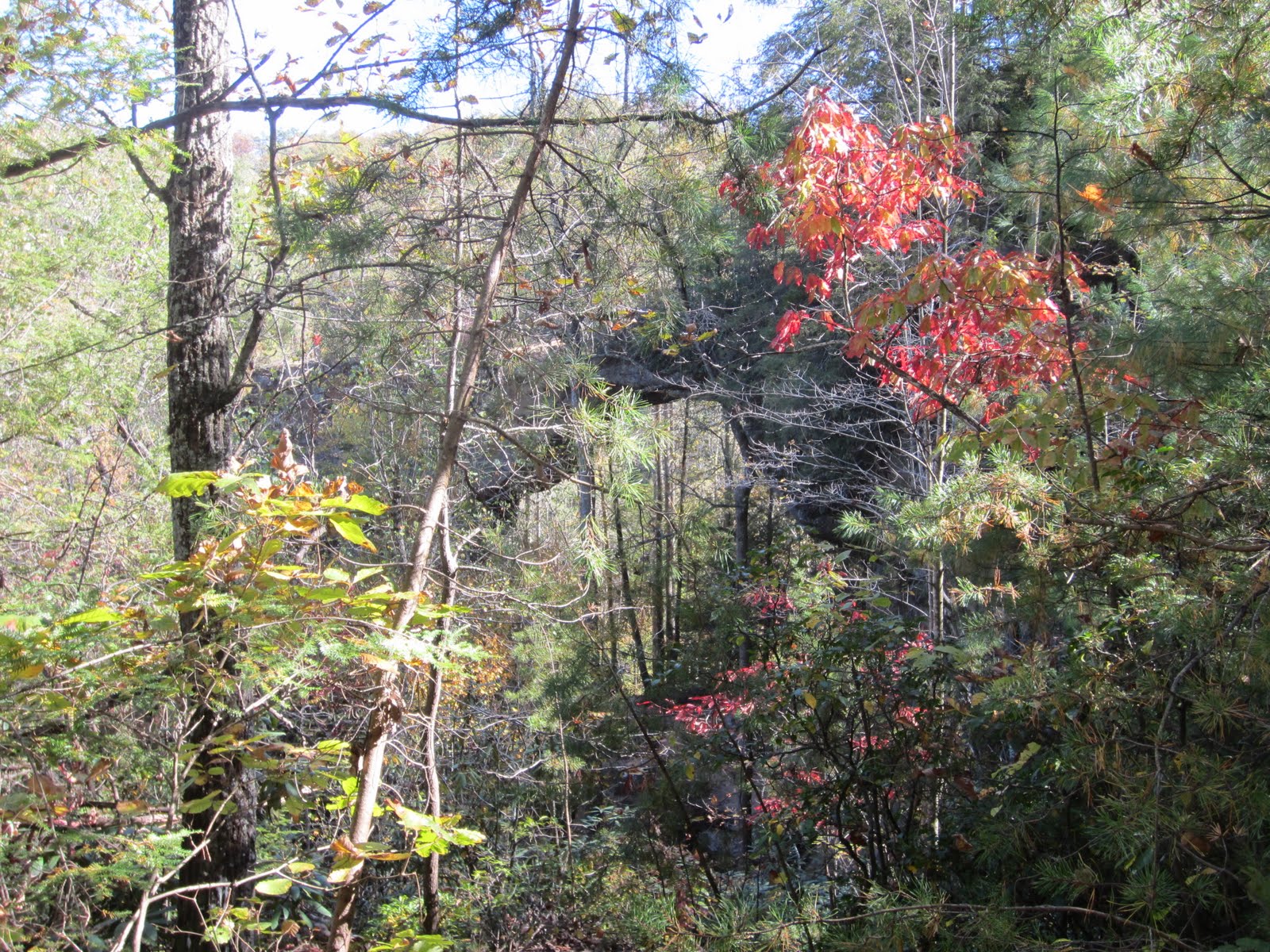 Nov. 6th, 2011 01:58 amПосле завтрака проехать надо было всего полчаса, потому путь к первой арке мы начали в 7.30 утра еще в сумерках. Лес Даниэля Буна большой, тянется с севера на юг на сотни километров, но самой посещаемой его частью является Red River Gorge (Ущелье Красной Реки), в котором мы и оказались.