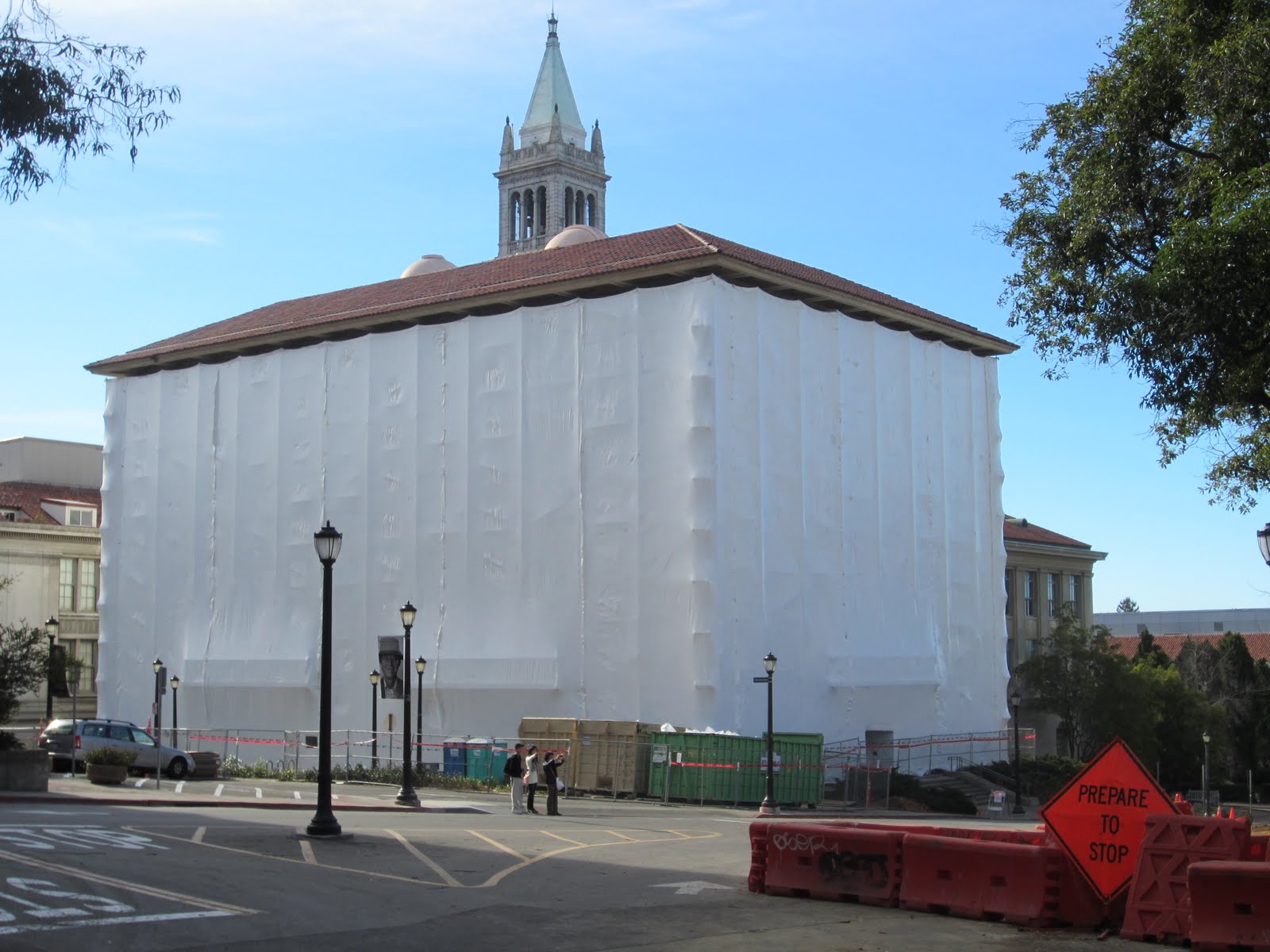 А потому город находится в постоянной готовности. Все брошюры по безопасности включают не только пожары, наводнения и пр., но и землетрясения. Для каждого здания отмечаются уровни сейсмоустойчивости. На кампусе UC Berkeley время от времени укрепляют старые постройки в соответствии с новыми кодексами. Вот, например, такими балками укреплен Hildebrand Hall, где расположена химическая библиотека.
