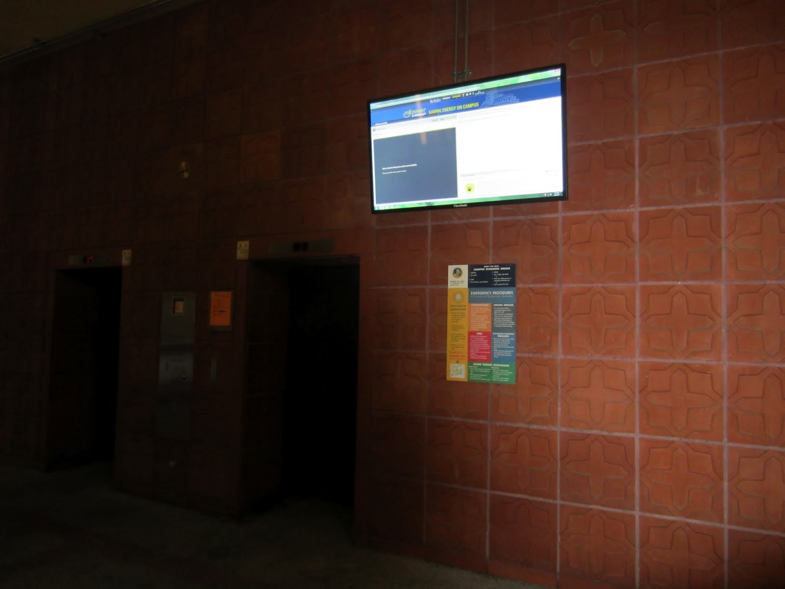 В Питтсбурге тоже при входе стояли экраны, но на них хотя бы можно было нажимать пальцем и получать информацию о факультете. Здесь же красноречивейший пример глупости всех борцов за экономию электроэнергии, «Час Земли», глобальное похолодание и пр.