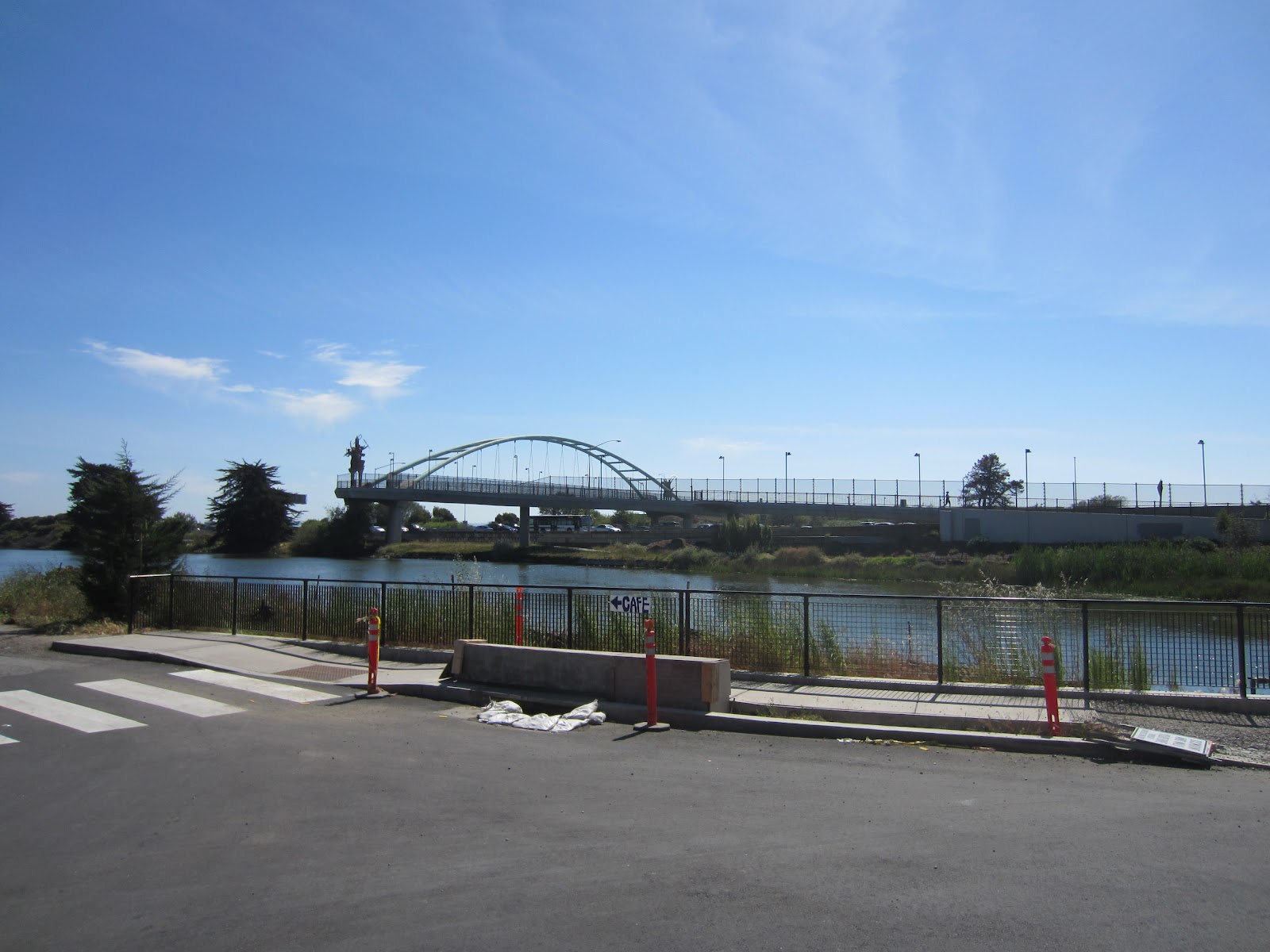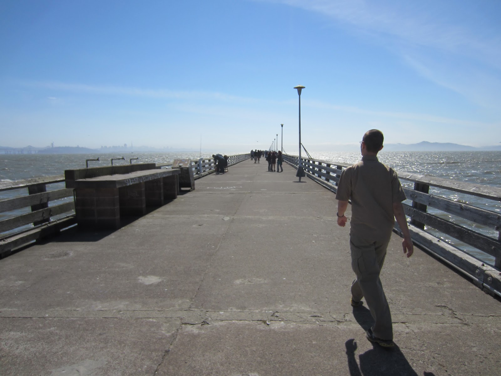 Мы прошли уже немало, но в планах было еще одно место чуть южнее. Еще один искусственный полуостров Berkeley Marina (то есть стоянка для яхт), не столь живописный как Albany Bulb, но более протяженный. Вдоль берега тропы нет, потому нам пришлось вернуться в город, пройти около мили к югу, вновь пересечь шоссе I-80. Здесь оно начинается на западе, а по его восточному концу мы часто ездили из Питтсбурга в Нью-Йорк.