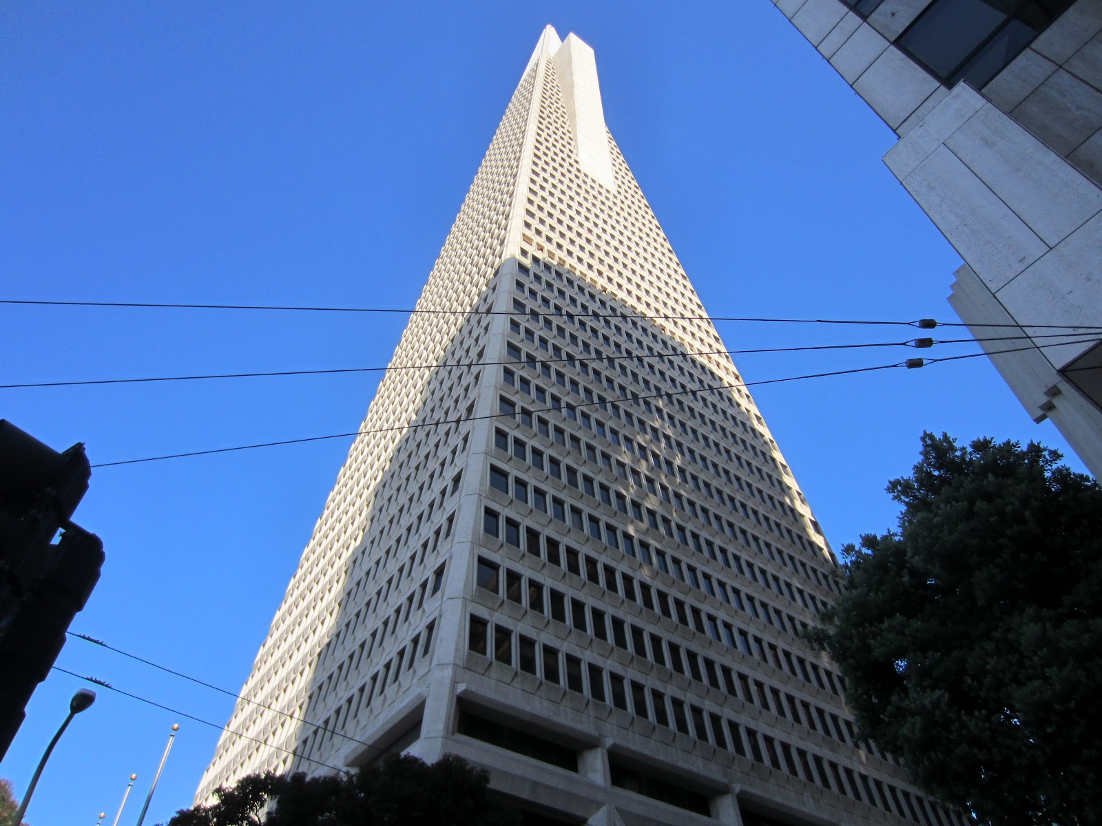 6) Мы подошли к основанию Transamerica Pyramid, самому яркому городскому небоскребу, который легко заметить с другого берега залива на фоне типовых параллелепипедов.