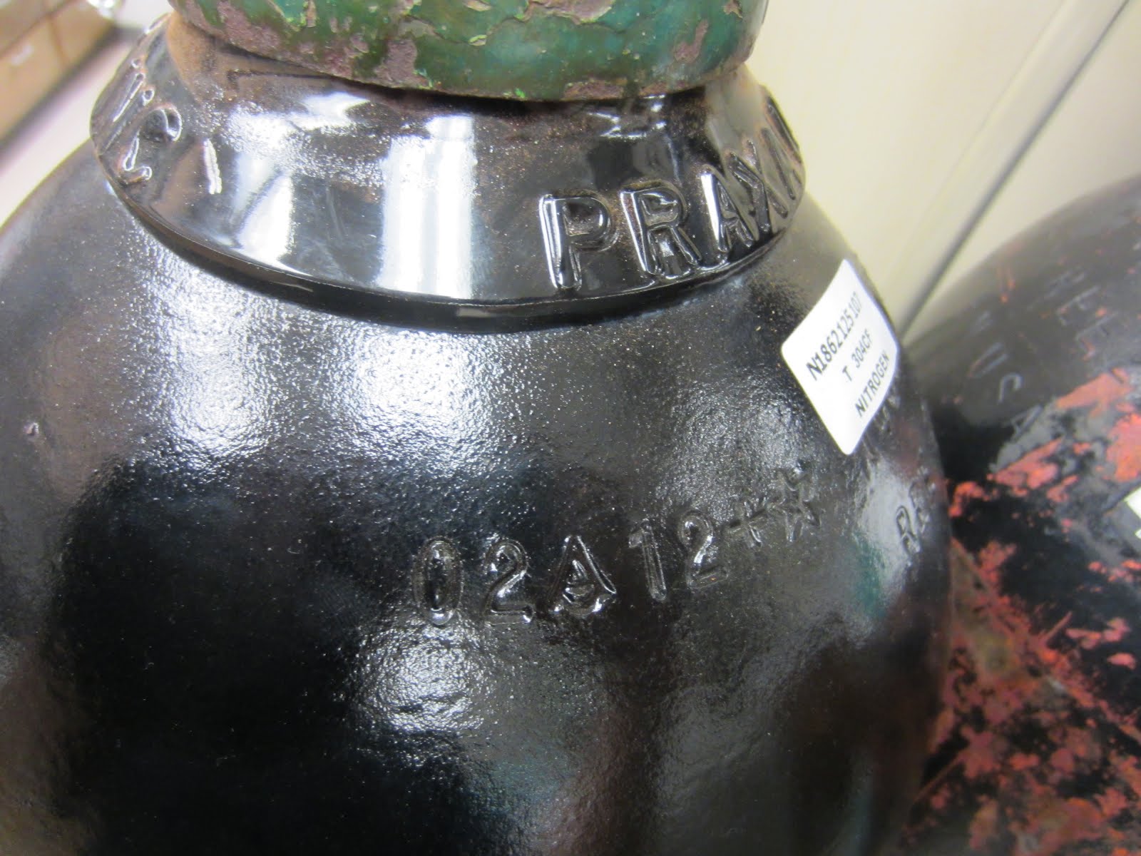 Так вот недавно был у них пост о старых газовых баллонах. В каждой лабе стоят такие большие металлические чушки с аргоном, водородом и прочими флюидами. Так вот баллоны (или как их тут называют «цилиндры») обычно не покупаются, а берутся в аренду у фирмы, производящей газы, она потом пустые чушки забирает и вновь заправляет. В результате баллон может служить верой и правдой очень долго. Как долго? Я никогда не задумывался.
