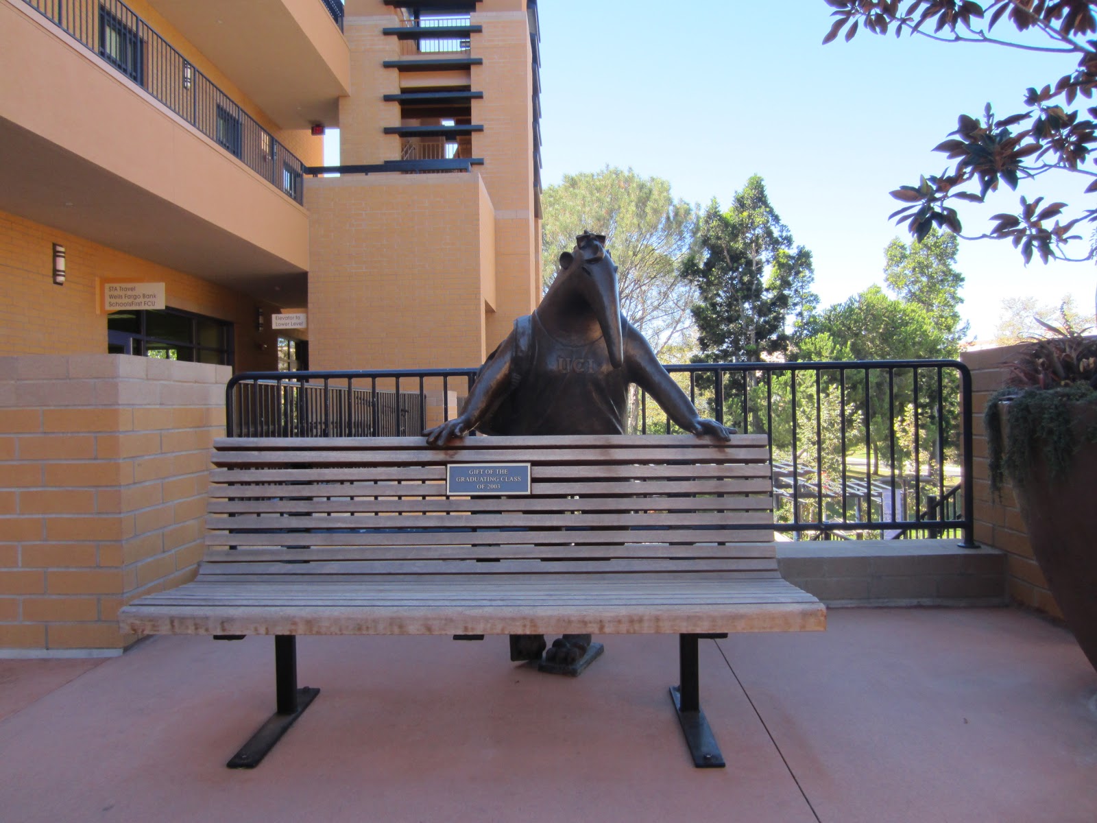 Но четкий снимок можно получить, разве что забравшись на соседнее дерево или воспарив над кампусом. Бронзовых товарищей на скамейках Student Center’а я уже показал,