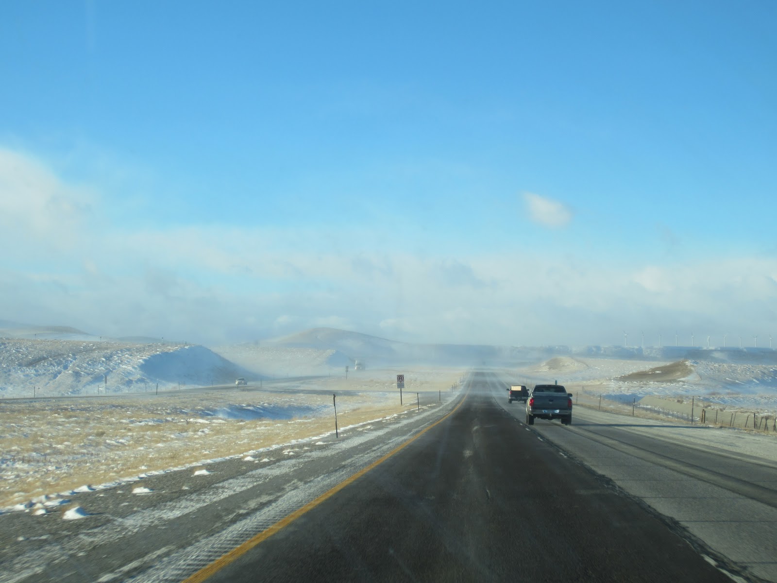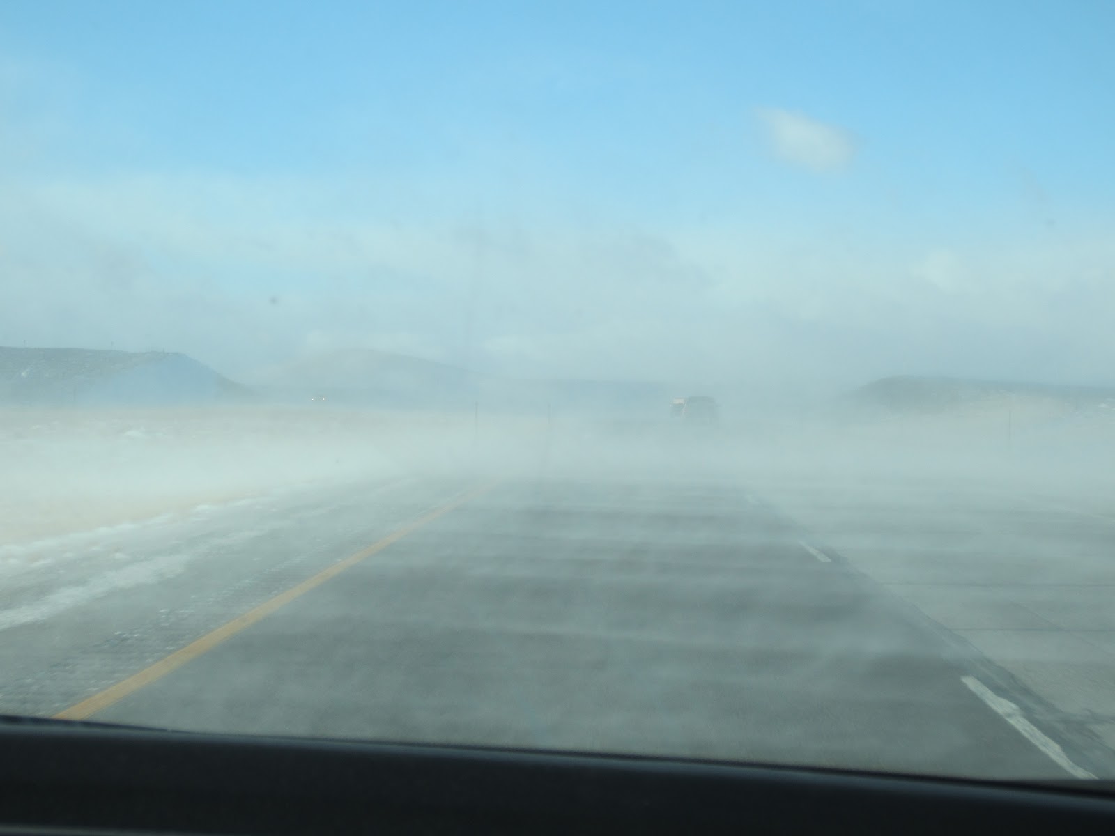 Сегодня главной неприятностью был ветер порывами до 55 миль в час (25 м/с), который гнал снежную поземку и ощутимо раскачивал машину.