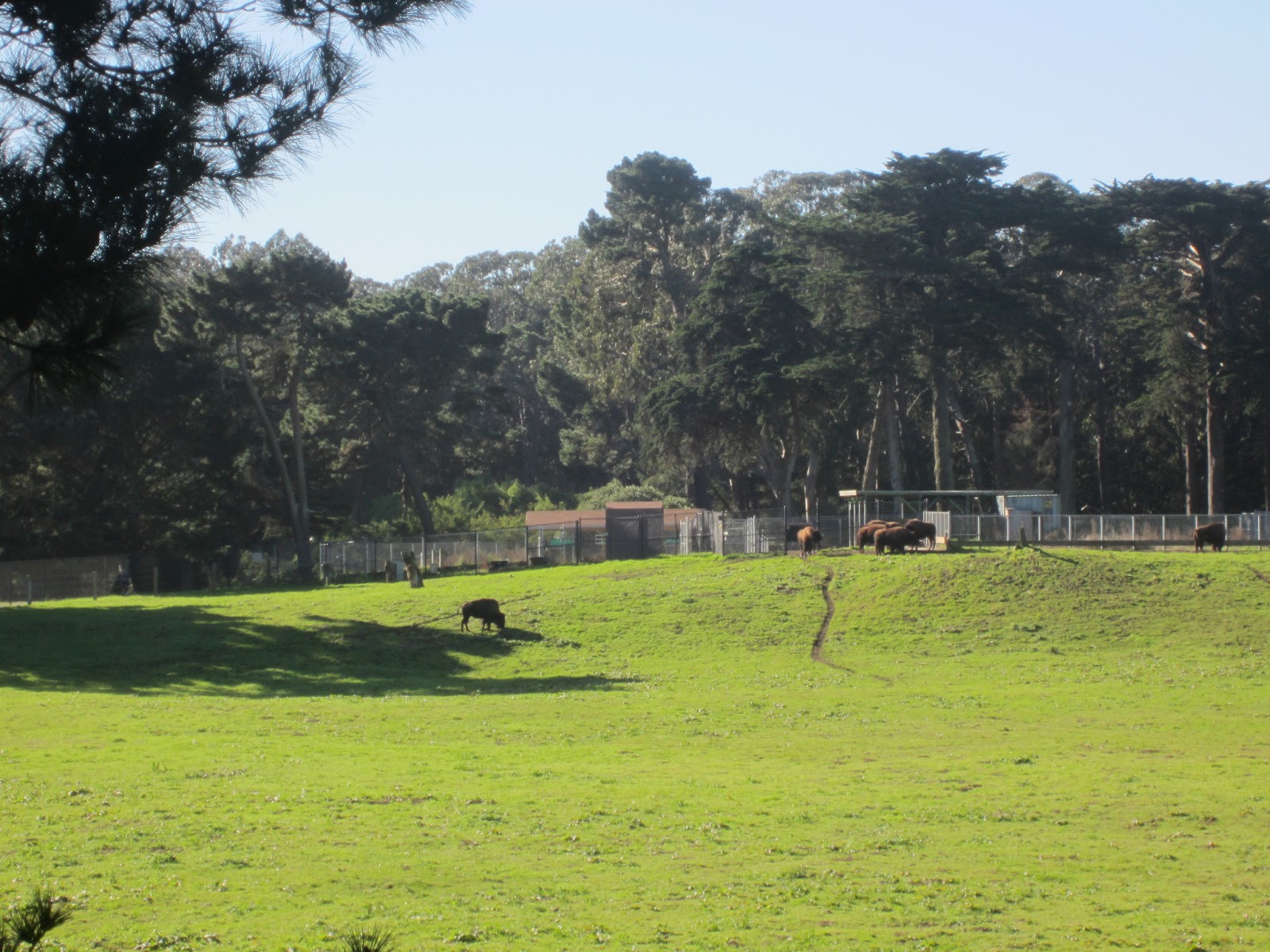 Да, бизоны в Golden Gate Park'е. Там так много всего, что есть и бизоны. Но видно их там плохо. Они за двойным забором, кормить их посетителям запрещено, а потому они близко не подходили. Другое дело зубробизоны в Токсово рядом с Питером, где мы каждое лето дачу снимали. Вот там их можно рассмотреть поближе. А за бизонами надо, наверно, ехать в Йеллоустоун. Но когда мы там с братом были, все бизоны куда-то попрятались :(