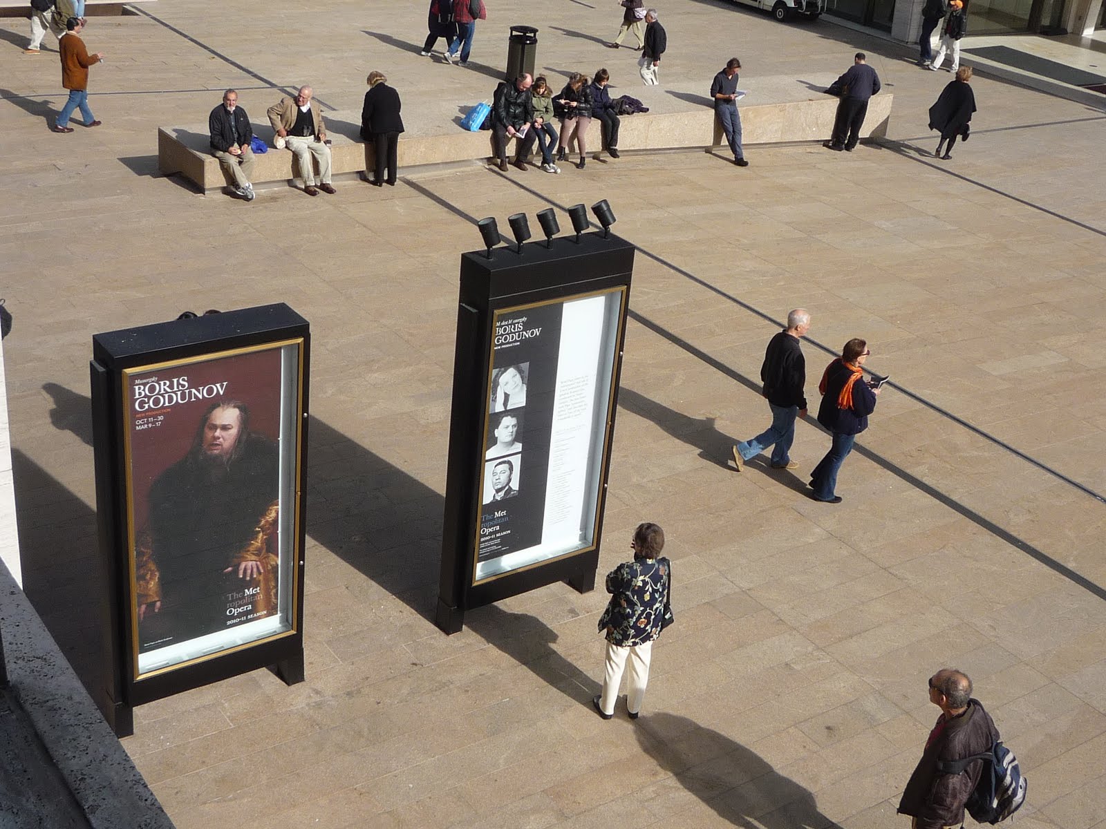 в пятницу 21 октября. До этого мы только по субботам ходили, так как самое лучшее исполнение нужно ожидать в первый вечер, когда приходят музыкальные критики и к спектаклю еще есть повышенное внимание. Однако же публики в театре в пятницу было не меньше, чем обыкновенно бывало по субботам. Была и pre-talk лекция за час до начала. Если мы что-то упустили, так это гимн США, который в Опере, похоже, играют только в самую первую ночь сезона.